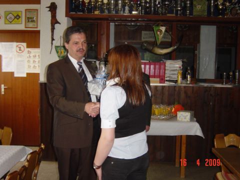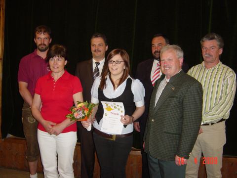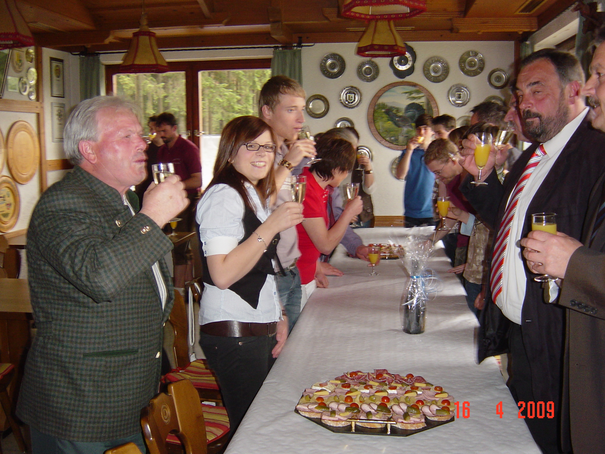 Sie startet seit 2002 für unseren Verein. Bei den Bezirksmeisterschaften des Schützenbezirks Oberpfalz in Höhenhof - Regensburg erreichte sie 388 Ringe und wurde 1. Bezirkssiegerin. Damit qualifiziert sie sich für die Teilnahme an den bayerischen Meisterschaften in München - Hochbrück. Mit einen Empfang würdigten Schützenmeister Johann Gösl, Bürgermeister Andreas Wutzlhofer (Vohenstrauß), Bürgermeister Josef Beimler (Waldthurn) die hervorragende Leistung. Sie überreichten jeweils ein Geschenk. Gemeinsam mit Trainer Josef Haberl, der Magdalena seit 2002 betreut, und den Mannschaftskollegen stoßen sie auf den Erfolg an.